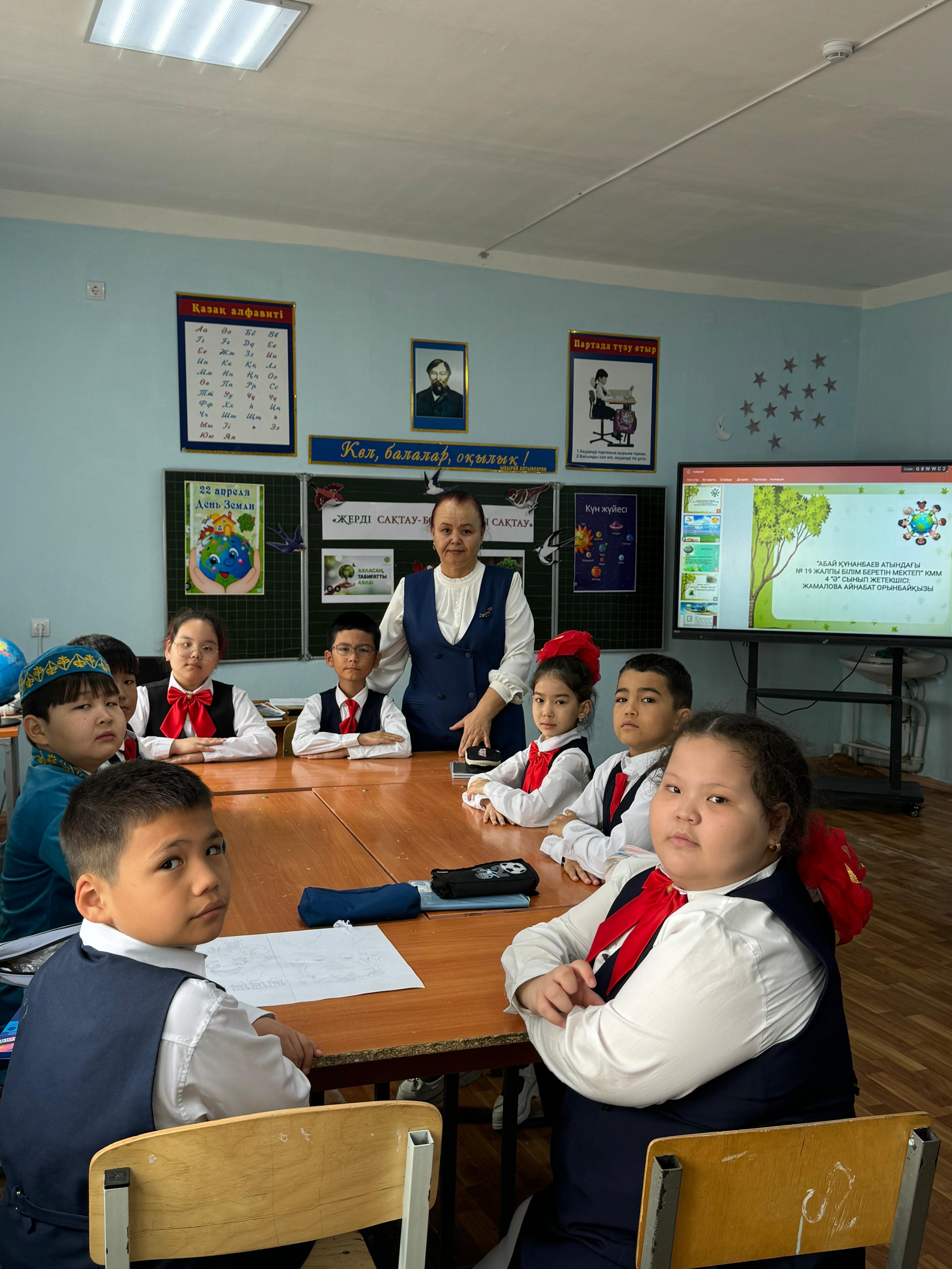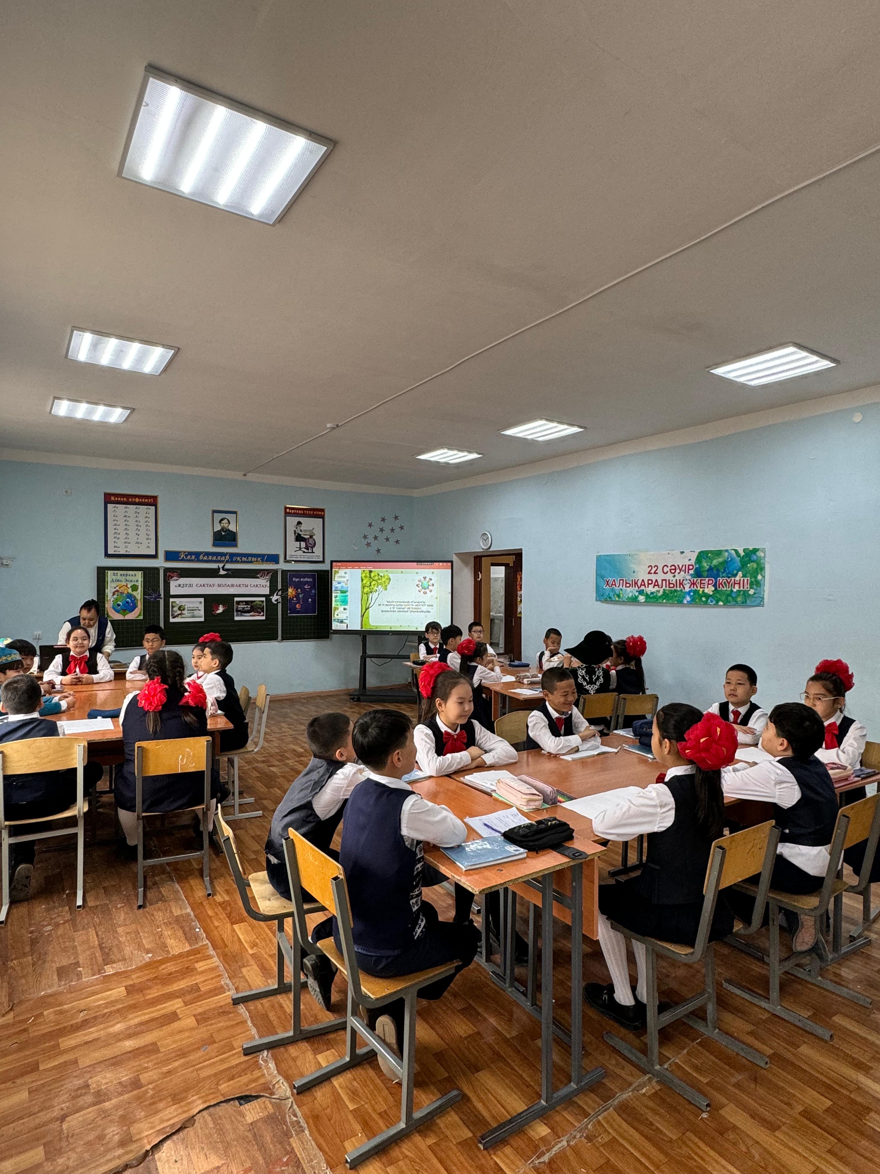 21 сәуір күні «Парктер шеруі–2026» акциясы аясында Жер күніне орай Жаңаөзен қаласы бойынша А.Құнанбаев атындағы №19 жалпы білім беретін мектептің 4 «Ә» сыныбында «Жерді сақтау – болашақты сақтау» тақырыбында танымдық тәрбие сағаты өткізілді. Сабақтың мақсаты – оқушыларды табиғатты қорғауға, туған елін, жерін сүюге, мейірімділік пен ізгілікке тәрбиелеу, сондай-ақ экологиялық білім беру. Танымдық сабақ барысында оқушылар мақал-мәтелдер айтып, жұмбақтар жасырып, сахналық көріністер қойып, сурет салып, белсенділік танытты. Сабақ соңында белсенді қатысқан оқушылар алғыс хаттармен марапатталды.